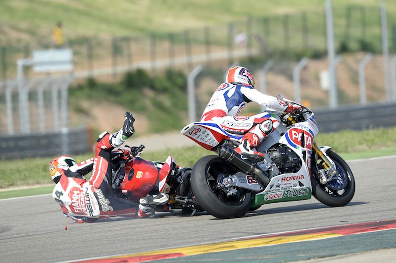 Gara 1 – secondo il nuovo orario, la prima delle due manche è iniziata alle 10.30 di questa mattina su un asfalto ancora abbastanza freddo (16°C). Giugliano, partendo dalla quarta posizione in griglia, è scattato molto bene ed era terzo alla fine del primo giro, alle spalle delle due Kawasaki di Sykes e Baz. Davide ha passato Baz al 3° giro, continuando a battagliare con il francese anche nel corso delle successive tornate. Il pilota Ducati Superbike ha tenuto la terza posizione per tutta la fase centrale della gara, sino al ultimo giro, quando Rea lo ha raggiunto e superato nel lungo rettilineo. Cercando di riprendere la terza posizione nelle ultime curve, c’è stato contatto fra Giugliano ed il pilota inglese e purtroppo è stato il pilota italiano ad avere la peggio ed è caduto. Davide è riuscito a tornare subito in sella e ripartire tagliando il traguardo in ottava posizione finale. Chaz, sesto in griglia, si trovava settimo dopo le prime curve. Ha avuto nel mirino le due Aprilia di Melandri e Guintoli, ed è riuscito a sorpassare entrambi i piloti a metà della gara. Dopo essere stato quinto sino al 13esimo giro, ha poi chiuso la gara in quarta posizione finale.