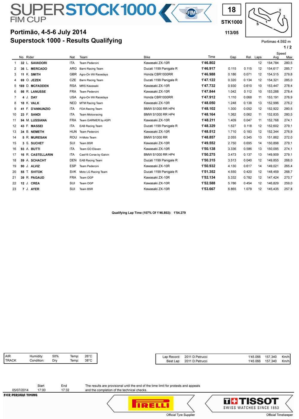 Autódromo Internacional do Algarve, Classifica Qualifiche
