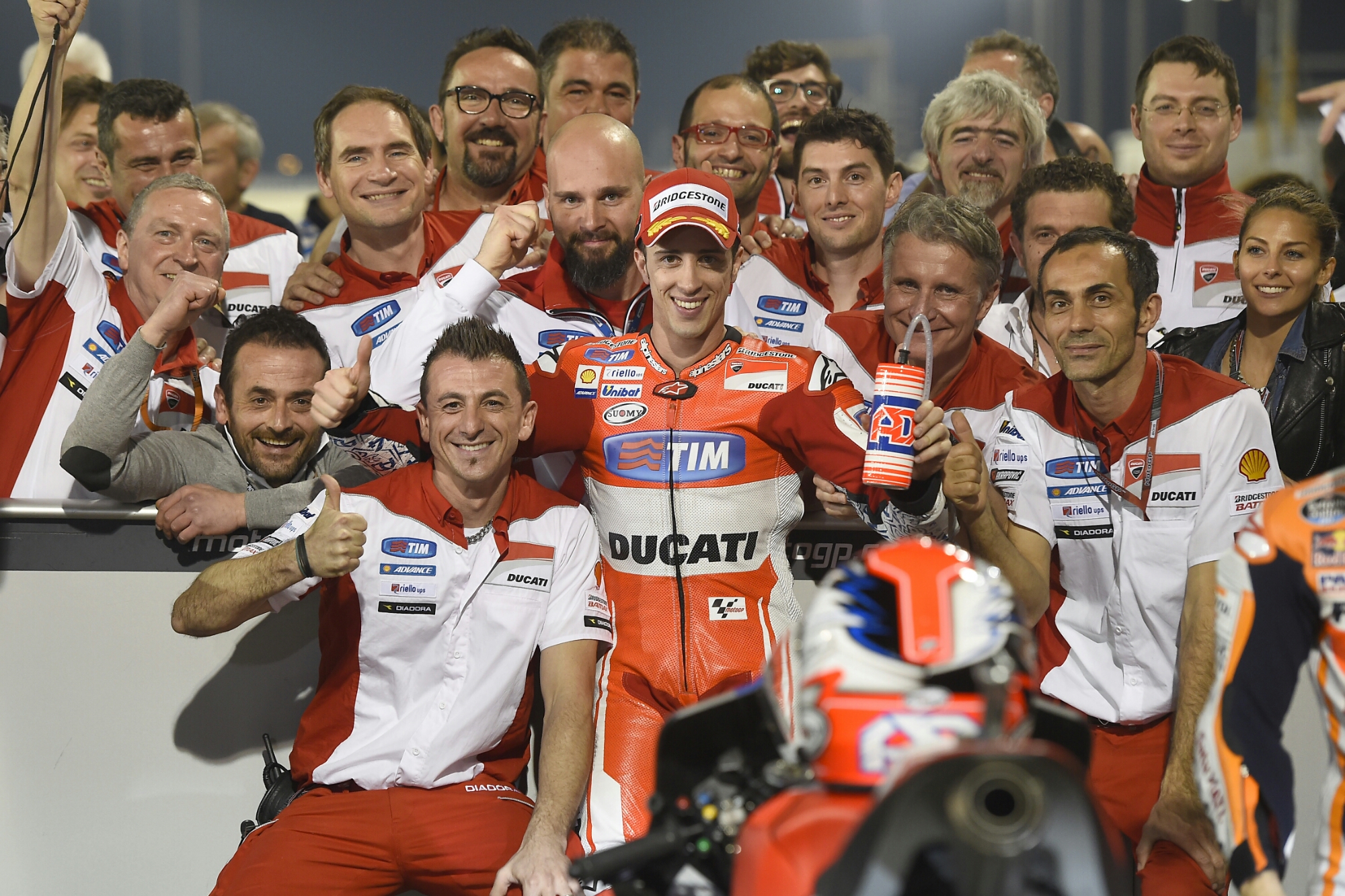 Splendida prestazione di Andrea Dovizioso nelle qualifiche del GP del Qatar. Il pilota del Ducati Team ha infatti conquistato la pole position segnando il tempo di 1’54”113, portando al debutto in gara la nuova Desmosedici GP15 nel migliore dei modi.