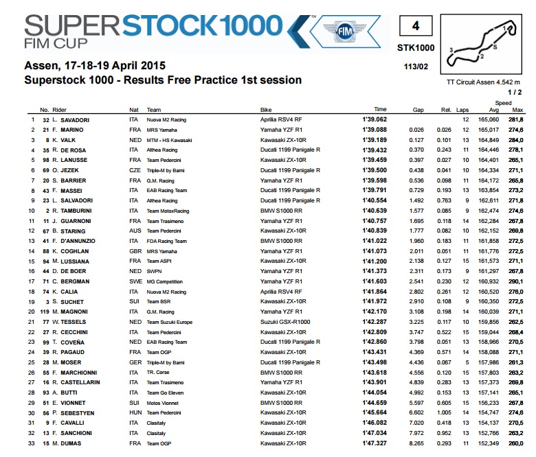 TT Circuiti Assen, Classifica Prove Libere 1