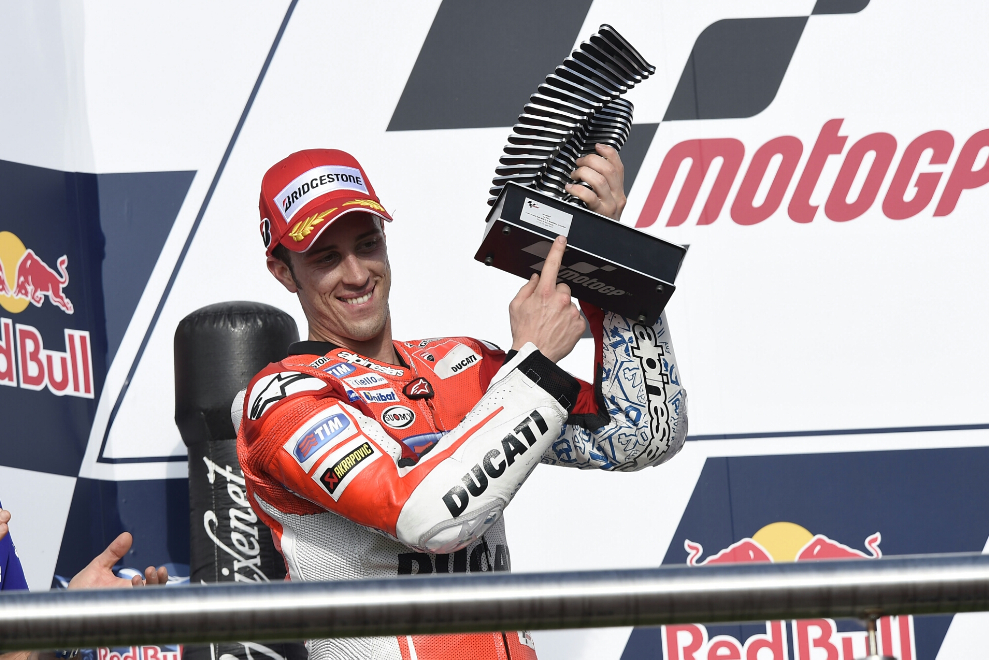 Il pilota forlivese ha colto questo risultato per la terza volta consecutiva in questa stagione, al termine di una gara veloce ed intelligente. Scattato dalla seconda fila, Dovizioso è passato sul traguardo in quinta posizione al termine del primo giro ed ha continuato la sua rimonta fino a salire al secondo posto nel corso dell’ottava tornata. Nell’undicesimo giro Rossi, in grande rimonta, ha superato il pilota del Ducati Team ma Dovizioso è rimasto in scia al pilota pesarese fino alla fine della gara e, complice la caduta di Marquez, ha terminato la sua gara al secondo posto.