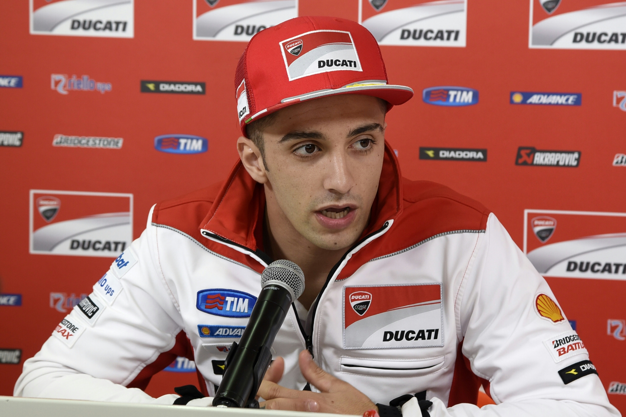 “Purtroppo mi sono infortunato alla spalla sinistra durante il secondo giorno di test al Mugello. Stavo provando la gomma anteriore più dura quando sono scivolato alla curva Arrabbiata 2. Dopo una visita a Cattolica dal Prof. Porcellini abbiamo iniziato subito la terapia per poter recuperare il più velocemente possibile. La spalla mi fa ancora male, ma comunque ho una buona mobilità e questa è una cosa positiva perché non essere limitato nei movimenti è confortante. Cercherò di guidare nel miglior modo possibile, ma non so ancora quanto dolore avrò e lo capiremo solo domani mattina, una volta che sarò salito in sella alla mia GP15.”