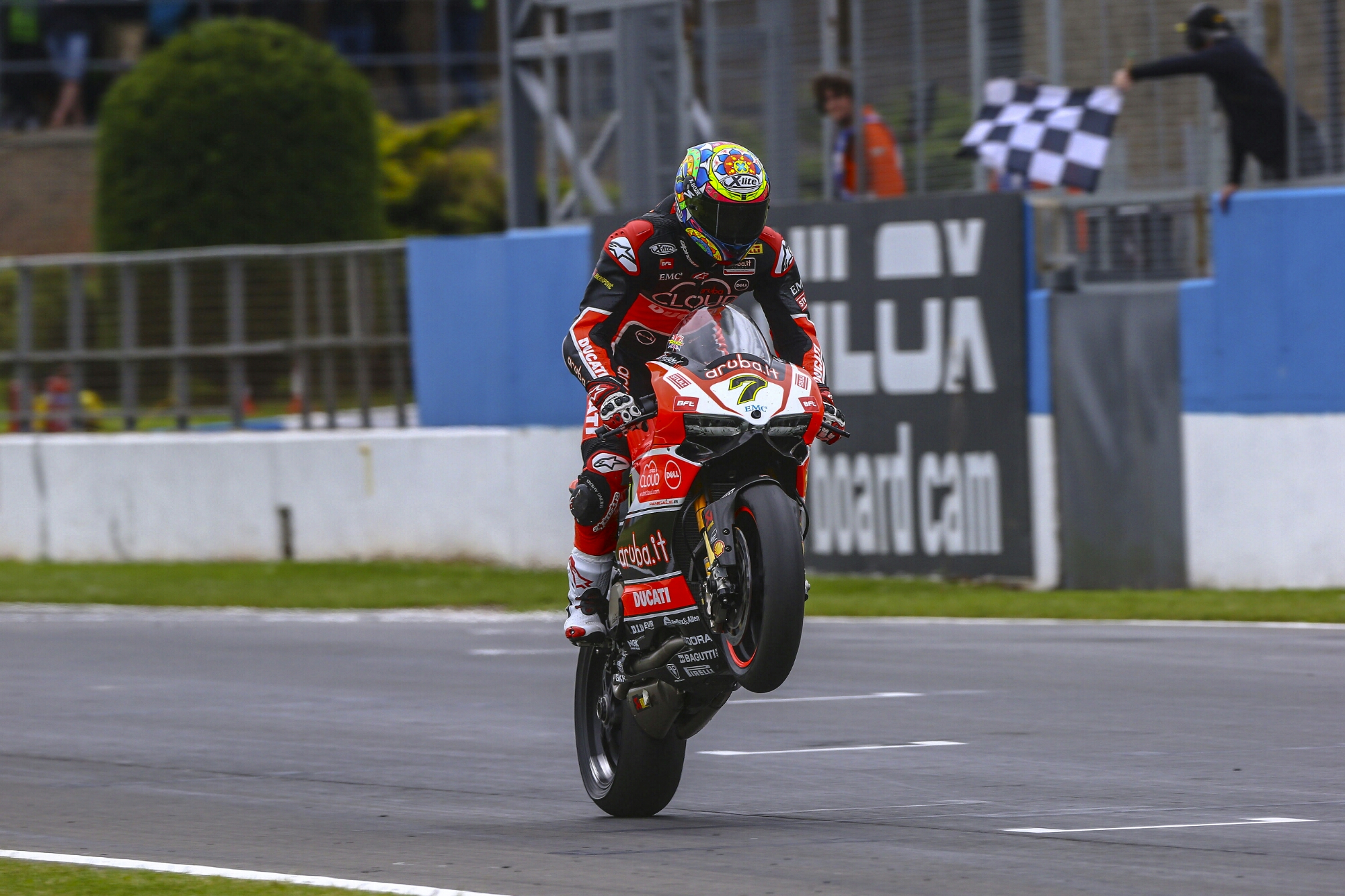 Ottimi risultati per Chaz Davies e per l’Aruba.it Racing – Ducati Superbike Team oggi sul circuito di Donington Park; sulla sua pista di casa, Davies ha portato la sua Panigale R sul podio in entrambe le manche, tagliando il traguardo due volte in terza posizione. Davide Giugliano ha concluso 17simo e quinto.