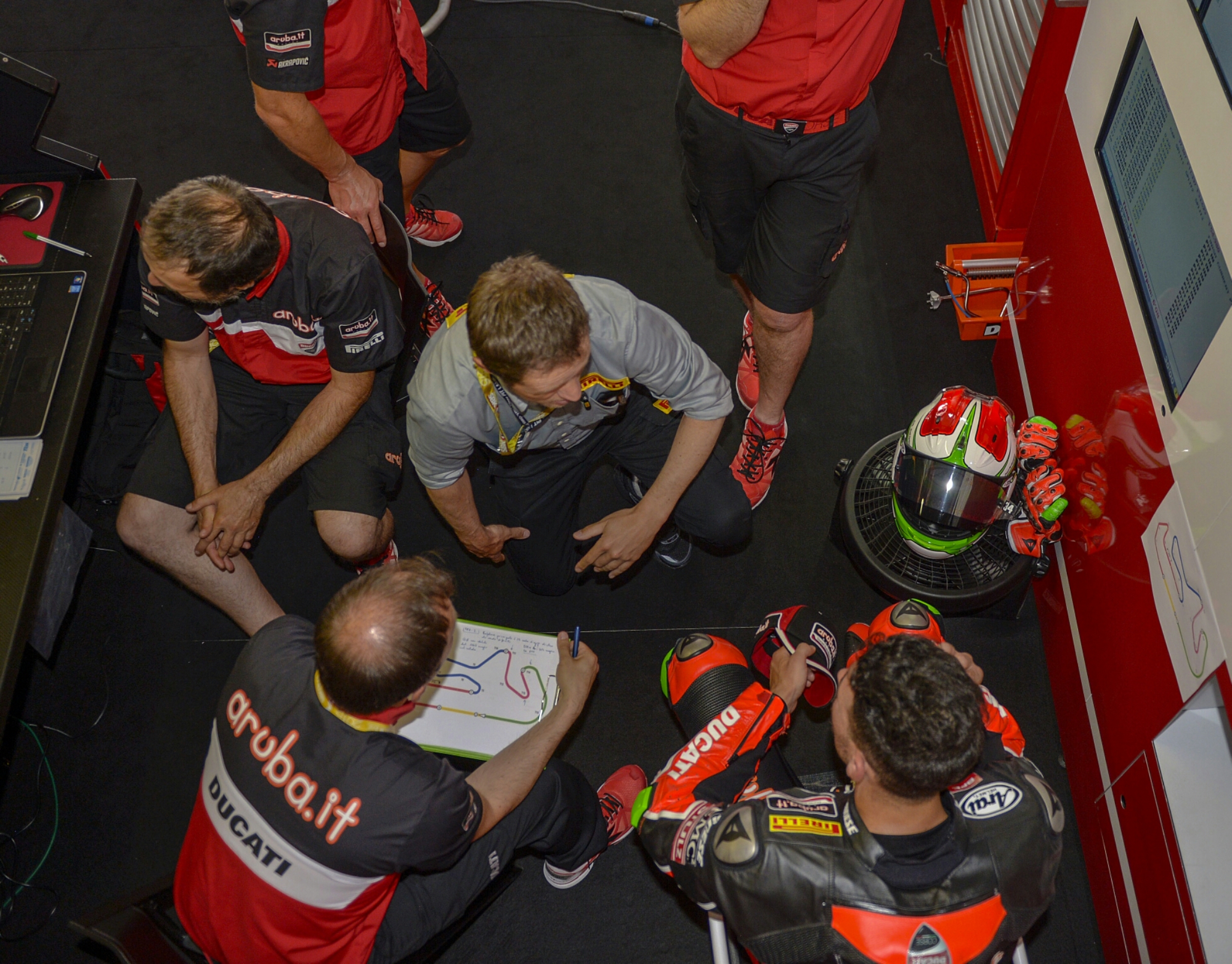 In condizioni meteo costantemente calde (temperatura dell’aria 30°C e dell’asfalto 52°C), il lavoro del team italiano si è focalizzato sulla prova delle gomme anteriori fornite per questo test dalla Pirelli. Con un intera giornata a disposizione i piloti hanno anche provato varie soluzioni per quanto riguarda il setup delle loro Panigale R trovando soluzioni interessanti in vista delle prossime gare.