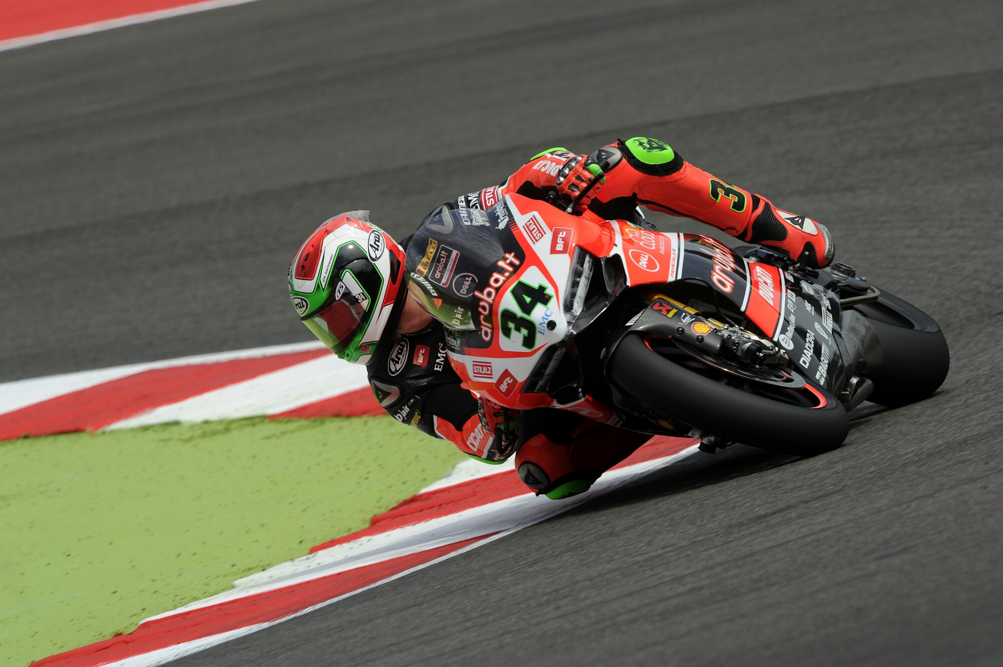 La prima sessione di prove cronometrate si è svolta in condizioni asciutte. Davies ha iniziato bene il weekend, lavorando con i suoi tecnici per trovare un buon set-up per la sua Panigale. Trovando subito un ritmo veloce, Chaz ha fatto registrare un miglior crono di 1’36.156 negli ultimi minuti, per chiudere la sessione al secondo posto. Purtroppo una caduta per Giugliano nel primo giro di uscita gli ha impedito di proseguire la sessione e, come conseguenza, non gli ha fatto registrare neanche un tempo utile per il primo turno. Il pilota italiano ha preso un forte colpo all’anca ed al gluteo destro, ma è stato comunque in grado di partecipare alla sessione pomeridiana. Scassa, che non correva da più di un anno, è salito in moto con l’intenzione di utilizzare questa prima sessione per prendere confidenza sia con la sua Panigale e con la pista. Migliorando costantemente il suo tempo, il pilota toscano ha chiuso con un tempo di 1’37.243 che lo ha posizionato quattordicesimo.