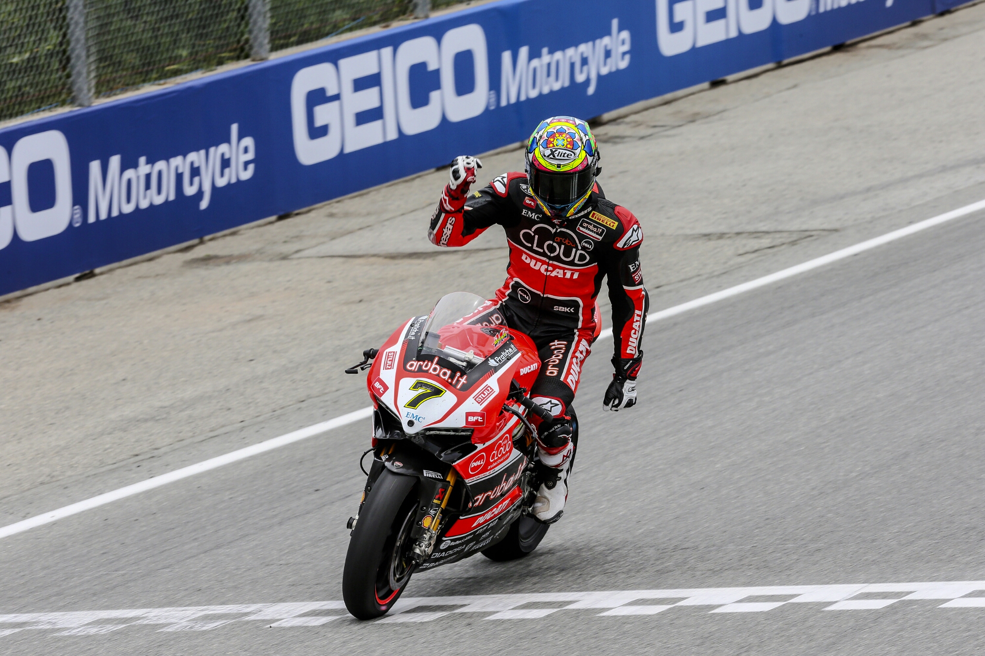 E’ stata una giornata di gara perfetta per Chaz Davies e l’Aruba.it Racing – Ducati Superbike Team che hanno trionfato in entrambe le gare al Mazda Raceway di Laguna Seca. Davide Giugliano ha chiuso la prima gara quarto, mentre purtroppo nella seconda è stato vittima di una brutta caduta, fortunatamente senza gravi conseguenze fisiche per l’italiano.