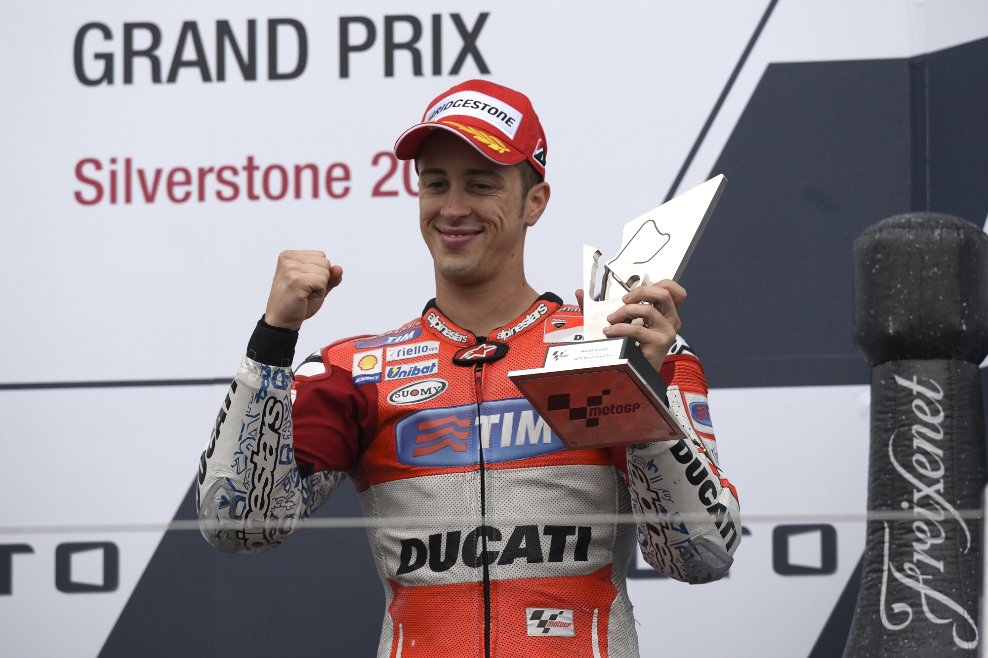 Ottima prestazione di Andrea Dovizioso oggi a Silverstone. Il pilota romagnolo del Ducati Team è stato protagonista di una bella gara ed ha terminato il British GP al terzo posto, dietro ad un ottimo Danilo Petrucci, secondo al traguardo con la Desmosedici GP del Pramac Racing Team. Più difficile la gara di Andrea Iannone, che ha invece chiuso il GP all’ottavo posto.