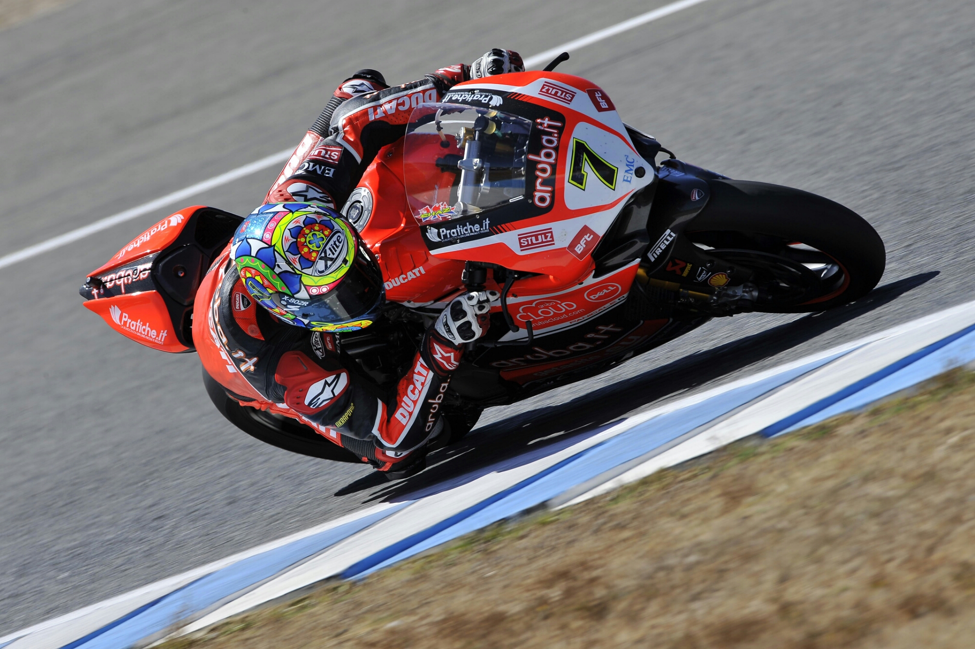 Le condizioni calde ed asciutte hanno permesso ai piloti Aruba Ducati di compiere ottimi progressi durante le due sessioni di prove cronometrate di 45 minuti ciascuna. Nella prima Chaz si è proiettato quasi subito fra i primi, per concludere poi in terza posizione, grazie ad un giro veloce in 1’42.056. Michele ha invece chiuso all’ottavo posto con un miglior tempo di 1’42.408.