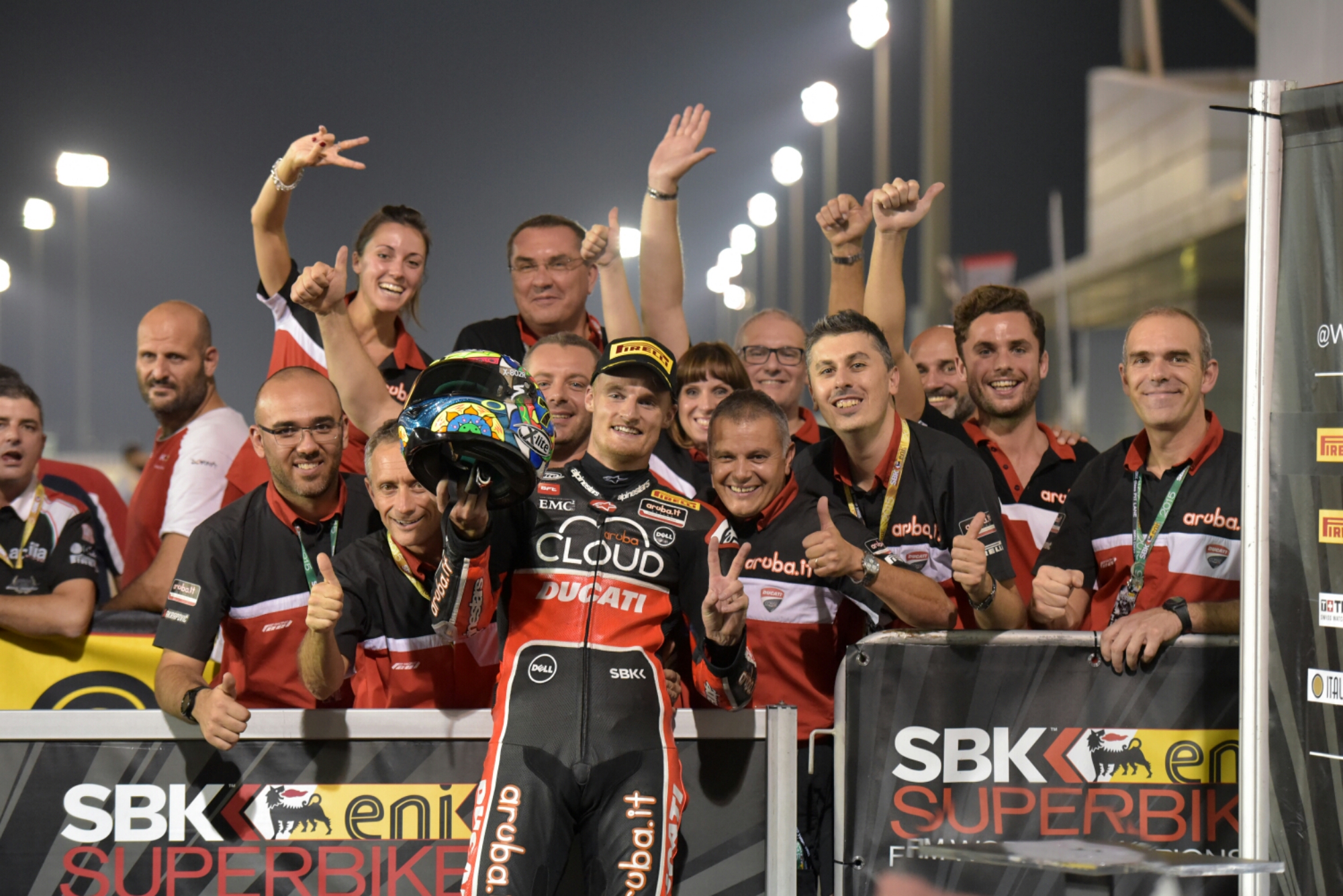 l’Aruba.it Racing – Ducati Superbike Team chiude il Campionato Mondiale Superbike 2015 in grande stile. Il pilota Chaz Davies conclude le ultime gare della stagione, al circuito di Losail, in quarta e seconda posizione, confermando la seconda posizione finale nella classifica generale del campionato. Ducati conclude al secondo posto nel campionato costruttori. Xavi Forés, indebolito da un virus, ha comunque tagliato il traguardo settimo in gara 1.