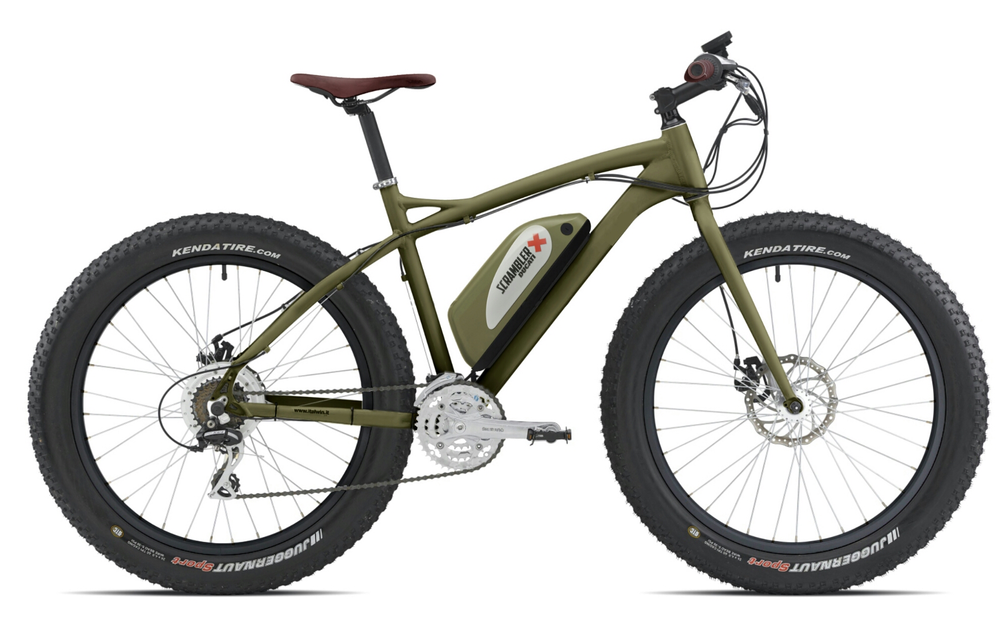 Fat e-Bike Scrambler Ducati completa la gamma dei modelli di biciclette elettriche sviluppate da Italwin in licenza con Ducati Motor Holding e dedite al comfort di guida in città.