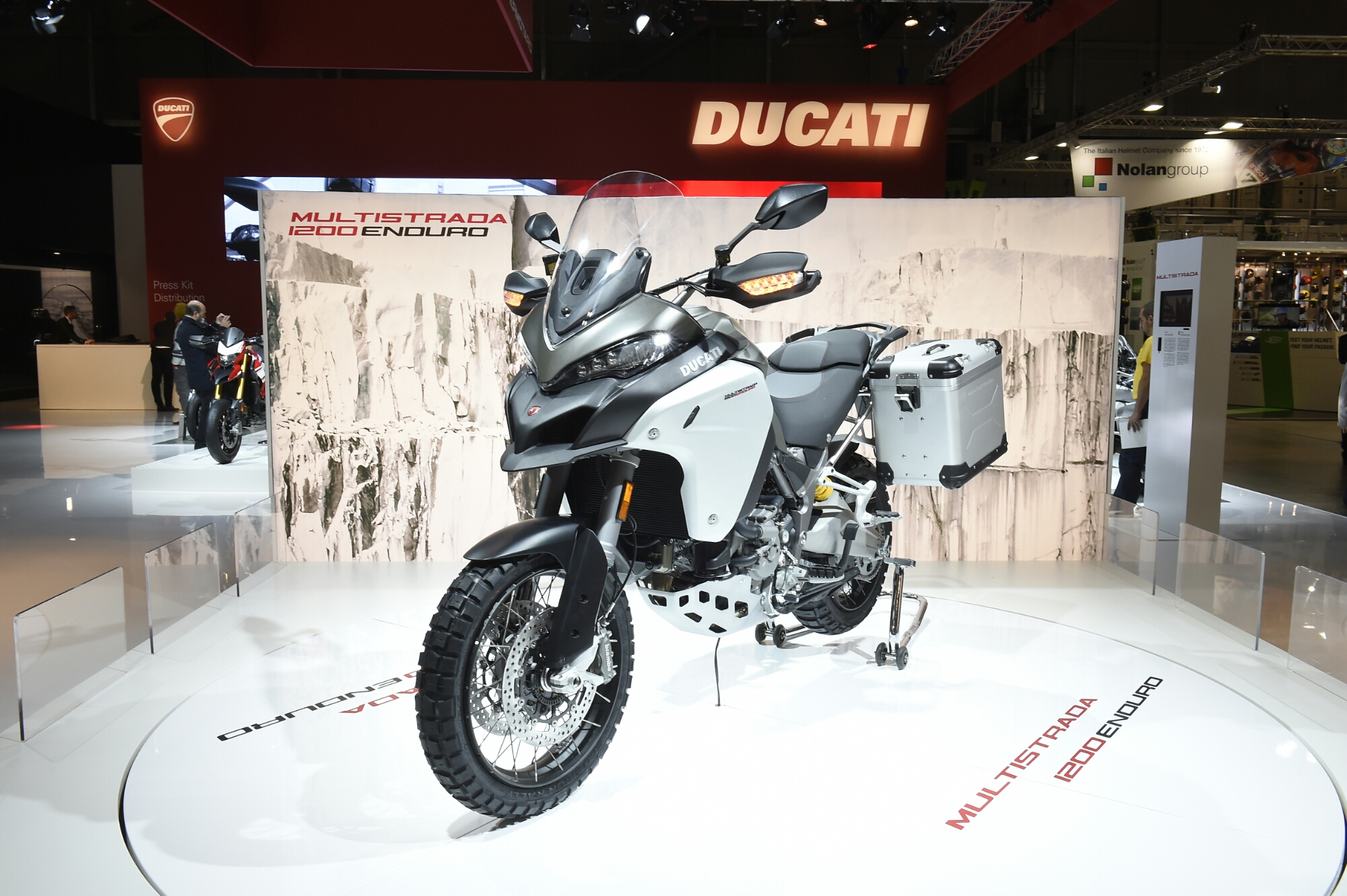 Al Motodays Ducati espone l’intera gamma 2016, ma è già prevedibile che la vera “regina” tra le moto esposte sarà la nuova Multistrada 1200 Enduro. L’ultima evoluzione della multibike di Borgo Panigale si presenta perfettamente declinata da globetrotter, pronta a sfidare e affrontare ogni tipo di terreno e di percorso, capace di aprire nuovi orizzonti per quanti amano l’esperienza del viaggio, l’emozione e il piacere di guida di una vera Ducati. Una moto completamente nuova, che a breve sarà disponibile nei Ducati Store di tutto il mondo e che in questa vetrina romana è presente nella versione accessoriata e nelle colorazioni Phantom Grey e Star White.