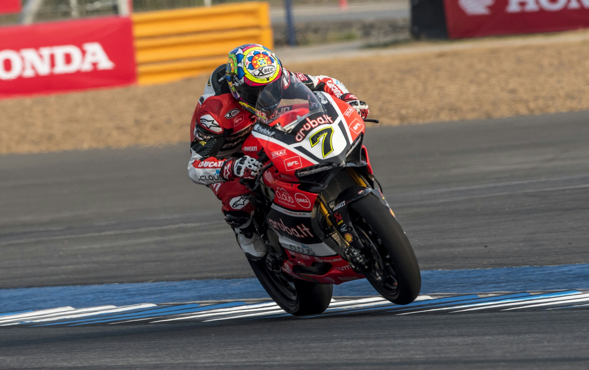 Dopo una prima giornata di prove influenzata dalle condizioni di caldo estremo e scarsa aderenza, il team Aruba.it Racing – Ducati è tornato in pista a Buriram (Tailandia) determinato a riscattarsi. La Superpole ha visto Chaz Davies e Davide Giugliano qualificarsi rispettivamente al quarto e sesto posto con distacchi sostanzialmente dimezzati rispetto al venerdì. Nonostante i passi avanti, tuttavia, in gara i piloti non sono stati in grado di lottare fino alla fine per la vittoria, conquistata dal campione in carica Jonathan Rea.