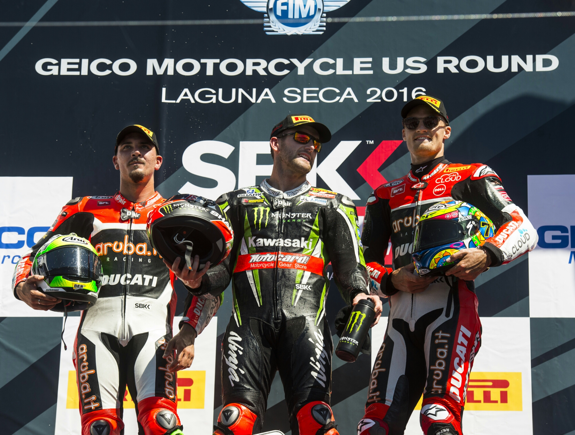 Il team Aruba.it Racing – Ducati ha dato spettacolo in Gara 2 del campionato mondiale Superbike Laguna Seca. Davide Giugliano e Chaz Davies sono infatti stati protagonisti, insieme a Tom Sykes, di una lotta per la vittoria avvincente quanto corretta, che ha consegnato agli archivi del mondiale delle derivate di serie una gara memorabile. Al termine di una lunga serie di sorpassi e colpi di scena, Giugliano ha tagliato il traguardo al secondo posto con Davies in scia.