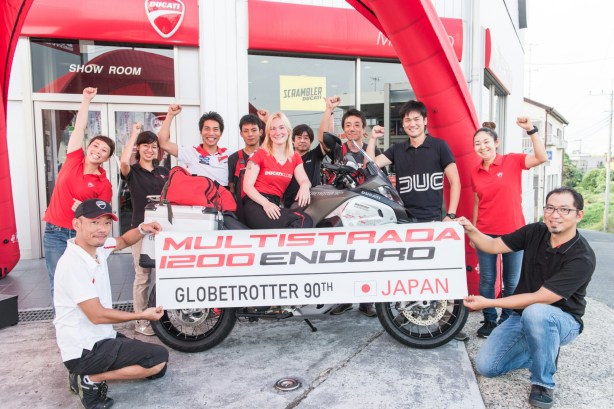 Un grande successo per Jessica Leyne, 27enne originaria delle Fiandre Occidentali, insegnante di matematica e web designer che nelle isole nipponiche ha vissuto un’altra delle sue avventure di cui essere fiera. Già in passato durante i viaggi fra Norvegia e Romania, Slovacchia e Italia, non ha mai conosciuto ostacoli: né la visiera congelata o il fango fino alla sella e neppure un polso fratturato. In Giappone si è trovata a dover affrontare anche il tifone Malakas che purtroppo, dopo aver dissestato il Sud della Cina, ha flagellato Taiwan e l’arcipelago nipponico con raffiche di vento fino a 160 km/h provocando anche inondazioni. Ma Jessica, con la sua esile corporatura (è alta appena un metro e 62 centimetri), ha deciso coraggiosamente di continuare il suo viaggio in sella alla Multistrada 1200 Enduro ed è stata appena rallentata dal tifone nella sua attraversata del Sol Levante.