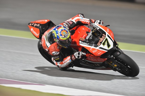 La prima giornata di prove del tredicesimo ed ultimo appuntamento del Campionato Mondiale Superbike, di scena in notturna in Qatar, ha visto il team Aruba.it Racing – Ducati imporsi in vetta alla classifica dei tempi con Chaz Davies. Il pilota gallese, vincitore di cinque delle ultime sei gare e reduce da due doppiette consecutive, ha confermato la propria competitività anche sul tracciato di Losail siglando il miglior tempo in 1’57.712. Competitivo già dalla FP1, chiusa al secondo posto, Davies ha lavorato in ottica gara con riscontri incoraggianti anche dal punto di vista del ritmo, per poi dare lo strappo decisivo nei minuti finali con gomma nuova.