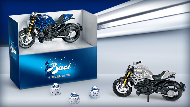 Il modellino Ducati Monster Baci® Perugina® è il regalo perfetto per tutti: adulti, bambini, appassionati dello storico marchio di Borgo Panigale o amanti del mondo dei motori, ai quali si desidera donare un piccolo pensiero unito alla bontà e alla qualità dei Baci® Perugina®.