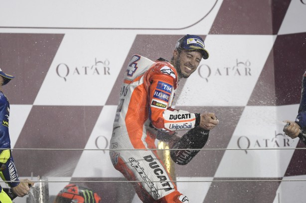 Grande gara di Andrea Dovizioso a Losail. Il pilota romagnolo del Ducati Team ha terminato in GP del Qatar in seconda posizione a meno di cinque decimi dal vincitore Viñales, con cui ha lottato per tutta la seconda parte della gara. Quello di oggi è il terzo secondo posto consecutivo dal 2015 per il pilota italiano. La gara è partita con cerca 45 minuti di ritardo a causa delle condizioni meteo, ed è stata ridotta da 22 a 20 giri.