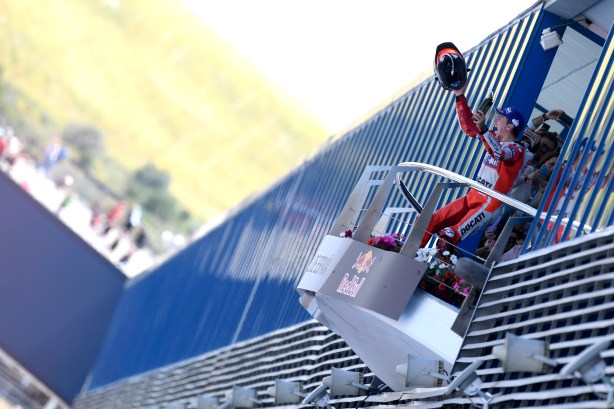 “Questo podio, ottenuto qui a Jerez davanti a tutti i miei tifosi e dopo le prime tre gare piuttosto complicate, è stato il migliore regalo che potessi ricevere per il mio trentesimo compleanno. E’ un risultato che mi soddisfa più di tante vittorie ottenute nel passato, perché è stato molto difficile da ottenere. Arrivare terzo con la Ducati su di un circuito storicamente ostico per la Desmosedici è incredibile! Sinceramente non pensavo di poter lottare per il podio e la scelta del pneumatico anteriore è stata determinante. La partenza è stata abbastanza caotica per il numero di piloti che avevo davanti ma non mi sono mai dato per vinto e ho creduto nella rimonta fino a riuscire a superare Zarco ed arrivare in terza posizione. Abbiamo vissuto dei mesi difficili fino ad oggi, però la cosa importante è che io ho sempre creduto in me e che la mia squadra mi ha dimostrato una fiducia incondizionata.”