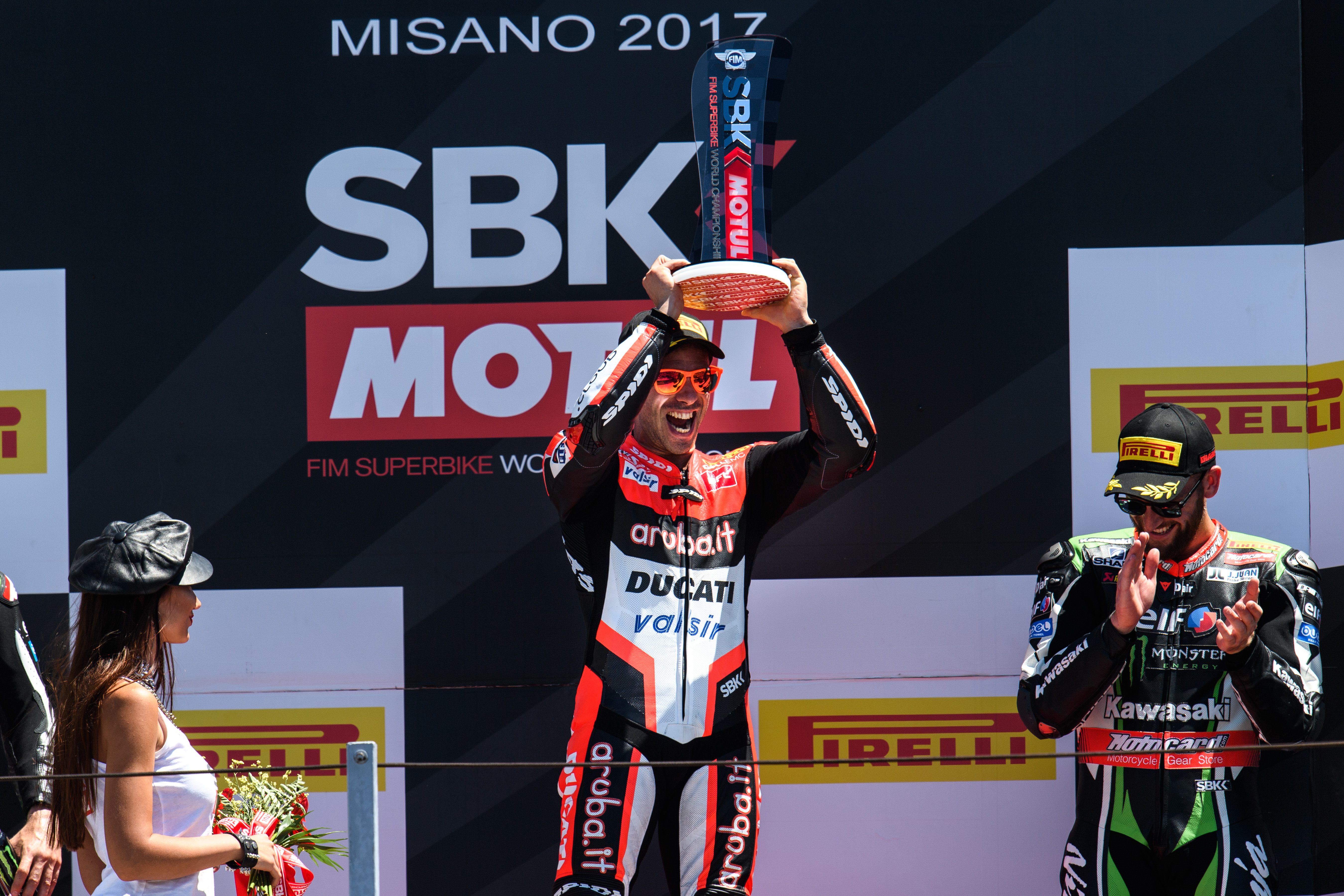 “È stata una vittoria piena di significati, perché era la mia prima con Ducati, la mia prima in Italia, e la centesima di un pilota italiano in SBK. È il frutto di tanto impegno, calma nei momenti difficili, ed un grande lavoro di squadra. Non abbiamo mai smesso di crederci, e questo risultato ci ripaga degli sforzi. Abbiamo fatto una piccola modifica questa mattina, e prima della partenza ero sicuro di potermela giocare. In gara ho cercato di gestire il mio ritmo e, una volta preso il comando, guidare pulito senza strafare. Spero che Chaz si rimetta in fretta, la sua è stata una brutta caduta ma fortunatamente senza gravi conseguenze. Spero di giocarmi un’altra vittoria con anche lui in pista già a Laguna Seca”.