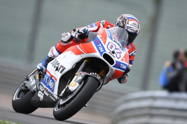 Andrea Dovizioso ha chiuso al primo posto la giornata inaugurale del GP di Germania, che si disputa questo fine settimana sul circuito del Sachsenring nei dintorni di Chemnitz. Il tracciato tedesco è stato riasfaltato di recente per cui i due turni di prove in programma oggi sono stati disputati con una durata di 55 minuti, 10 minuti in più rispetto al solito, per consentire ai piloti di provare meglio le varie soluzioni di pneumatici messi a disposizione da Michelin per questa gara.