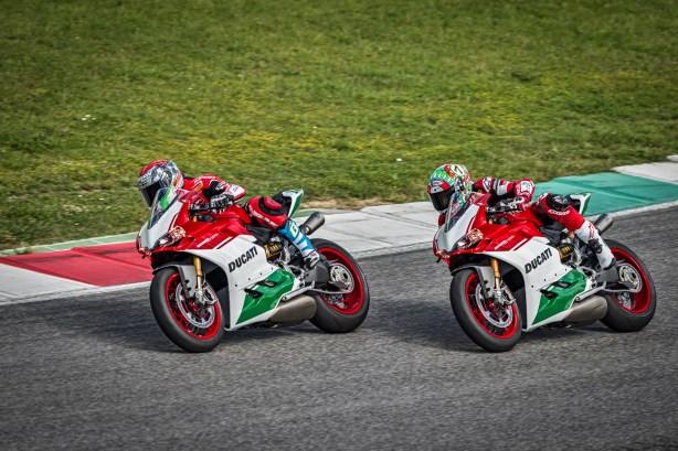 “Sono davvero orgoglioso di presentare questa nuova versione della nostra Panigale” ha detto Claudio Domenicali durante la presentazione. “Forse nessun’altra Casa motociclistica ha legato il proprio nome in modo così diretto con un motore, come ha fatto Ducati con il bicilindrico sportivo. Oggi siamo qui a celebrarne la storia, trovandoci alla vigilia dell’apertura di un nuovo capitolo nel quale il nostro sistema desmodromico verrà utilizzato su una nuova generazione di motori V4 derivati dal knowhow sviluppato in MotoGP, un terreno nel quale il nostro motore ha dimostrato prestazioni fuori dal comune. Ma questo è il futuro, oggi vogliamo rendere omaggio al bicilindrico che, con le sue doti di coppia e le sue dimensioni compatte, ha permesso a Ducati di vincere in SBK in tutti gli anni in cui ha partecipato. È il motore che ha scritto la storia del Mondiale Superbike. Dalla prima vittoria di Marco Lucchinelli, il 3 aprile 1988 con la 851 a Donington Park, nella gara inaugurale del mondiale delle derivate dalla serie, fino alle gare vinte da Chaz Davies e Marco Melandri in sella alla Panigale R quest’anno, costruendo un palmares fatto di 333 vittorie, 17 Titoli Costruttori e 14 Titoli Piloti”.