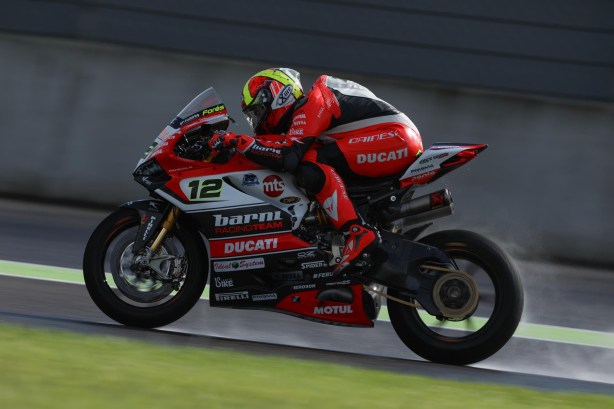 Si chiude con un tredicesimo posto il venerdì del Barni Racing Team sul circuito del Lausitzring, in Germania, nono round del MOTUL FIM World SBK Championship. Xavi Forés non riesce così ad accedere direttamente alla Superpole 2, ma dovrà disputare la Superpole 1 per cercare di migliorare la sua posizione sulla griglia di gara 1. Dopo una sessione mattutina sull’asciutto, dove la Ducati Panigale R del team bergamasco aveva chiuso al dodicesimo posto con il miglior crono in 1’38.917, la seconda sessione è stata caratterizzata da diversi incidenti e dall’arrivo della pioggia, che ha poi impedito a tutti i piloti di migliorare i propri tempi. Le prove sono state interrotte una prima volta per la rottura del motore di Lowes (Yamaha) e per la successiva caduta di Bradl (Honda), poi una pioggia molto intensa ha costretto la direzione gara a stoppare di nuovo la sessione. Con il tracciato bagnato Forès non ha più avuto possibilità di migliorare il suo best lap e si è così dovuto accontentare di una posizione a ridosso della top 10.