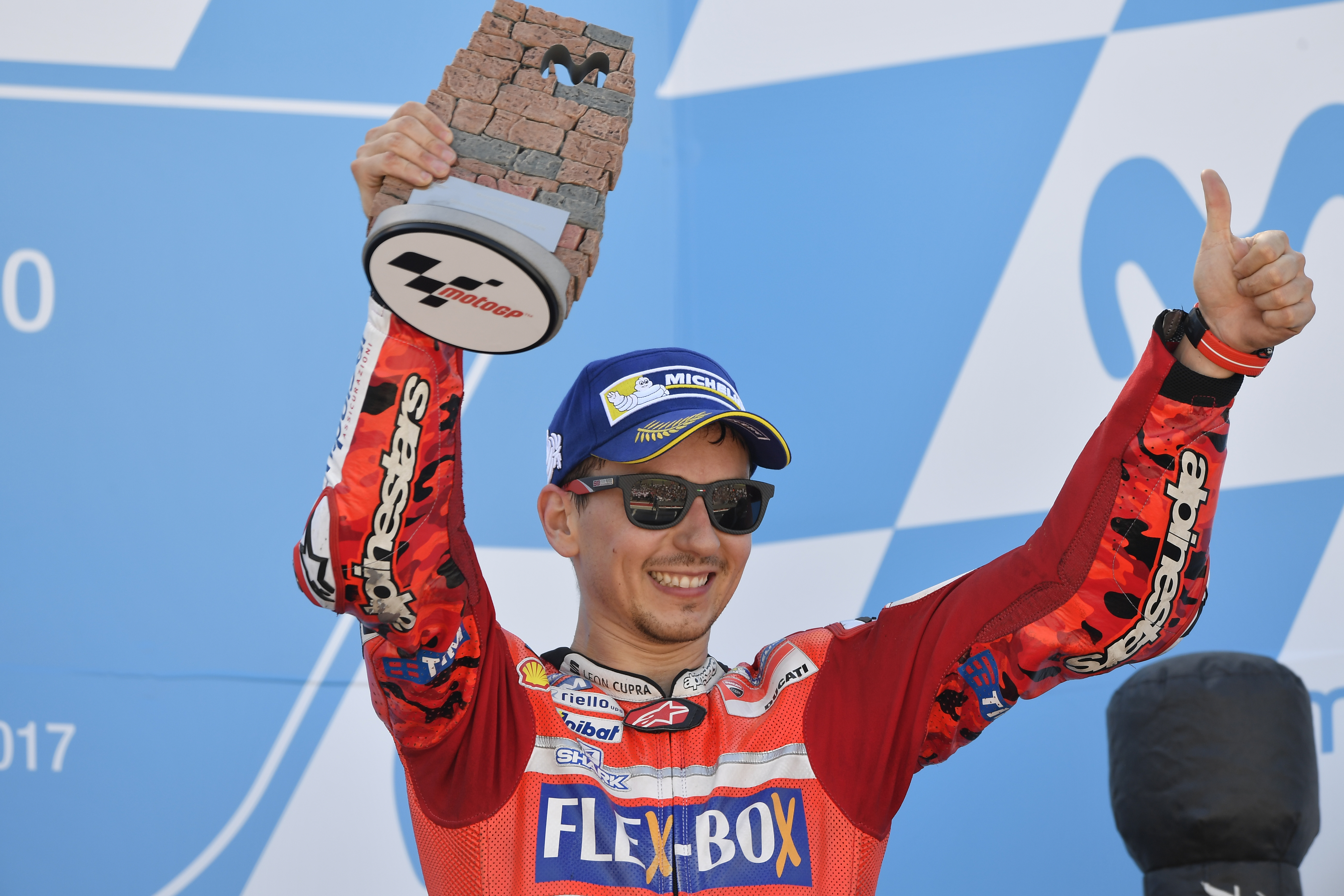 Jorge Lorenzo è salito sul podio del GP de Aragón grazie al terzo posto ottenuto nella gara di oggi, disputata in una splendida giornata di sole davanti ad un pubblico numeroso (70.541 spettatori dichiarati dagli organizzatori). Il pilota spagnolo del Ducati Team è scattato molto bene al via ed è subito passato in testa alla prima curva, mantenendo poi il comando della gara per quindici giri. Nel corso del sedicesimo passaggio Jorge è stato superato da Marquez e a tre giri dalla fine anche da Pedrosa ed ha quindi tagliato il traguardo in terza posizione, a due secondi dal vincitore.