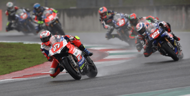 Come da previsioni meteo, oggi la decima gara del CIV Superbike si è disputata sotto la pioggia, rendendo difficile il lavoro dei piloti e dei tecnici del team Motocorsa Racing. Dopo la fantastica vittoria di Zanetti nella gara di ieri, tutta la squadra di Lorenzo Mauri oggi era decisa a confermarsi ai massimi livelli, ma le mutate condizioni del meteo e della pista hanno mischiato le carte ed i valori in campo.