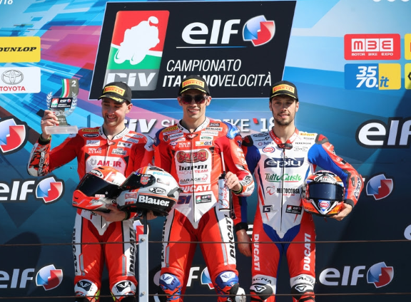 La giornata di ieri era servita ai piloti ed ai tecnici della squadra di Lorenzo Mauri per adattare il setup delle loro Panigale R alla pista romagnola, mentre questa mattina, nel secondo ed ultimo turno di qualifiche, Zanetti e Perotti si sono impegnati al massimo per ottenere una buona posizione sulla griglia di partenza della gara del pomeriggio, ostacolati anche dalla nuova regola del CIV che prevede una penalizzazione per le Ducati, alle quali è stata aggiunta una zavorra di cinque chili.