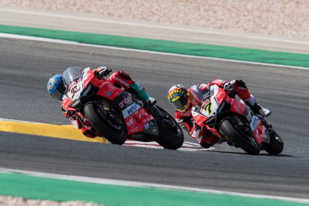 Dopo il secondo posto ottenuto in Gara 1, il team Aruba.it Racing – Ducati ha fatto il bis in Gara 2 a Portimão (Portogallo) con Marco Melandri, terzo al traguardo a soli due secondi dal vincitore dopo una gara particolarmente combattuta e caratterizzata dalle alte temperature, con oltre 40 gradi sull’asfalto. Chaz Davies, già sugli scudi al sabato con una coraggiosa rimonta dalla quindicesima posizione, ha nuovamente tagliato il traguardo al quarto posto nonostante la spalla destra dolorante, dopo aver guidato la gara per undici giri partendo dalla pole position.