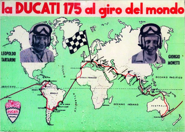 Ducati inaugura, all’interno del proprio Museo a Borgo Panigale, “Road Map Il leggendario giro del mondo di Tartarini e Monetti”, una mostra temporanea dedicata a Leopoldo Tartarini e Giorgio Monetti con l’esposizione delle due moto originali con cui fecero il giro del mondo nel 1957-1958.
