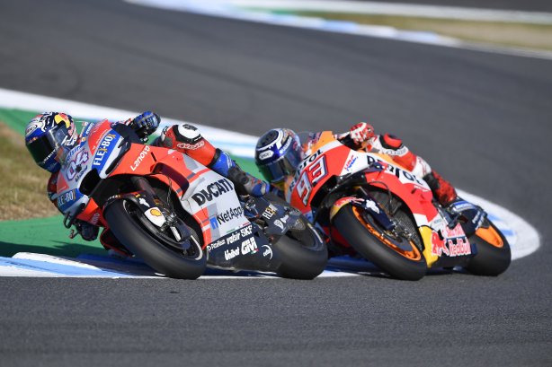 GP del Giappone sfortunato per Andrea Dovizioso che, dopo essere stato al comando della gara per i primi 20 giri, è stato poi superato da Marc Marquez ed ha seguito il pilota spagnolo fino a due tornate dal termine quando, nell’affrontare la curva 10, ha perso l’anteriore della sua Desmosedici GP ed è scivolato. Risalito in moto, Andrea ha chiuso al diciottesimo posto il GP del Giappone.