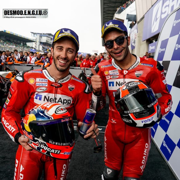 Ottimo risultato di squadra per il Ducati Team a Le Mans, teatro del Gran Premio di Francia, dove Andrea Dovizioso e Danilo Petrucci hanno portato entrambe le Desmosedici ufficiali sul podio, conquistando rispettivamente il secondo ed il terzo posto al traguardo, e Jack Miller ha chiuso al quarto posto, primo dei piloti indipendenti, con la terza GP19 del Pramac Racing Team.