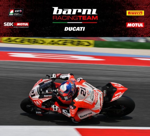 Si è conclusa la prima giornata del Barni Racing Team sul circuito di Misano Adriatico, teatro del settimo appuntamento del Campionato mondiale MOTUL FIM Superbike. I due piloti della squadra bergamasca Michael Rinaldi e Michele Pirro – in pista come wild card – hanno terminato rispettivamente settimo e dodicesimo nella classifica combinata dei tempi. Se Rinaldi ha migliorato costantemente i suoi crono partendo dalla base di assetto trovata nei test di fine maggio, Michele Pirro ha dovuto affrontare maggiori problemi essendo al debutto sulla Ducati Panigale V4 R del Barni Racing Team in configurazione Superbike. Il piota di San Giovanni Rotondo è stato vittima anche di due cadute: una nelle FP1 alla curva 14 e una nelle FP2 alla curva 4.