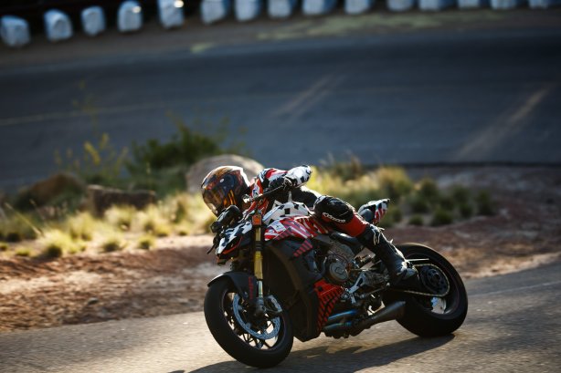 Questa 97esima edizione della Broadmoor Pikes Peak International Hill Climb segna la prima mondiale del nuovo Streetfighter V4 Ducati. La casa motociclistica bolognese ha deciso di sfruttare questa gara quale banco di prova ottimale per testare le elevate prestazioni del prototipo. Lo Streetfighter V4 deriva direttamente dalla sportiva Panigale V4, spogliata delle carene, con l’aggiunta di un manubrio alto e largo. La moto è dotata di motore 4 cilindri a V Desmosedici Stradale da 1100 cm3 da oltre 200 cv, e di profili aerodinamici laterali, appositamente progettati per garantire stabilità alle alte velocità mantenendo una ciclistica molto agile. La versione di serie dello Streetfighter V4 verrà svelata alla Ducati World Première e sarà disponibile, presso i concessionari Ducati, a partire dalla primavera del 2020.
