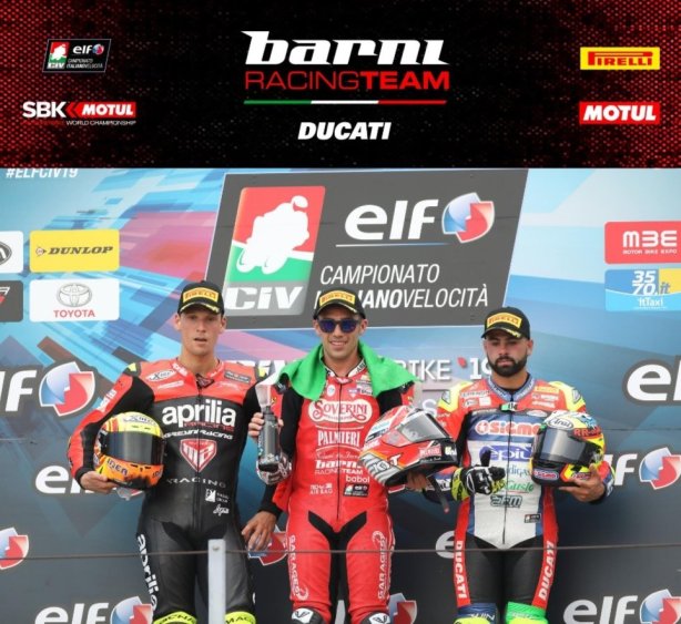 Pole position, vittoria e giro veloce in gara. Michele Pirro e il Barni Racing Team dominano il sabato del Campionato italiano velocità classe Superbike al Misano World Circuit Marco Simoncelli. Per Pirro si tratta della quinta vittoria stagionale su sette gare, un bottino che gli consente di allungare nella classifica di campionato dove è leader con 165 punti, 47 in più del secondo.