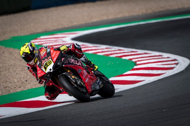 Per il team Aruba.it Racing – Ducati la prima gara del French Round sul circuito di Magny-Cours, nonché ottocentesima nella storia del Mondiale Superbike, si è conclusa con un buon quinto posto per Álvaro Bautista ed un ritiro inaspettato per Chaz Davies nei primi giri.