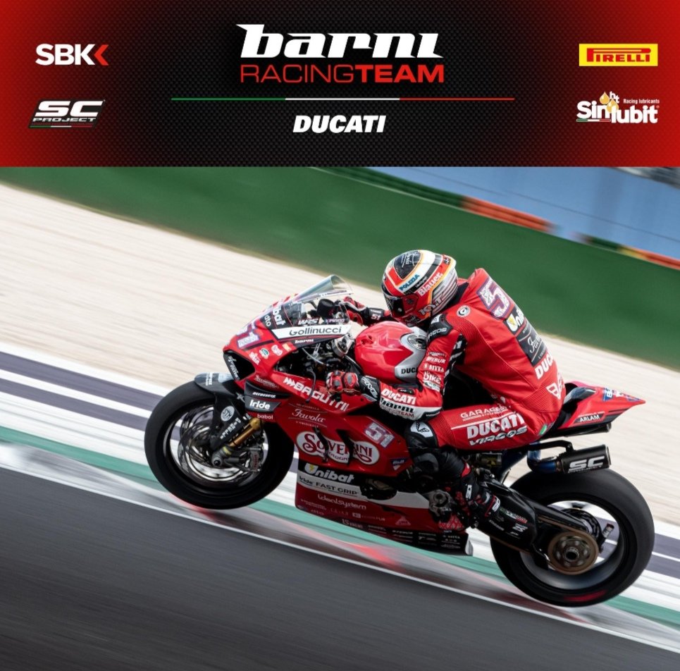 Domani, dopo la seconda sessione di qualifica che si prevede asciutta, la gara della Superbike scatterà alle 14.30. Domenica le Ducati Panigale V4 R del team bergamasco scenderanno in pista alle 15.20 per gara 2.
