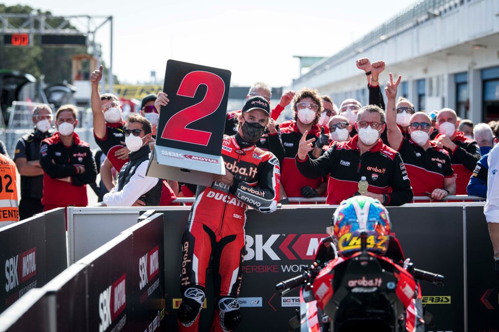 Il team Aruba.it Racing – Ducati tornerà a correre domani alle 12 (CET) nella Superpole Race con l’obiettivo di ridurre ulteriormente lo svantaggio nei confronti di Kawasaki (19 punti) per dare l’assalto al titolo costruttori in Gara-2, ultimo evento della stagione 2020 di WorldSBK.