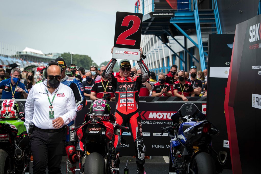 Dopo una qualifica convincente, Scott Redding e Michael Ruben Rinaldi partono rispettivamente dalla terza e quarta posizione e fin dal primo giro danno la sensazione di poter lottare per la vittoria. Soprattutto il passo di Rinaldi sembra essere particolarmente incisivo e gli consente di prendersi la terza posizione dietro a Rea (Kawasaki) e Razgatlioglu (Yamaha). Il pilota italiano spinge forte ma nel corso del terzo giro perde l’anteriore alla curva 8 compromettendo la propria gara.