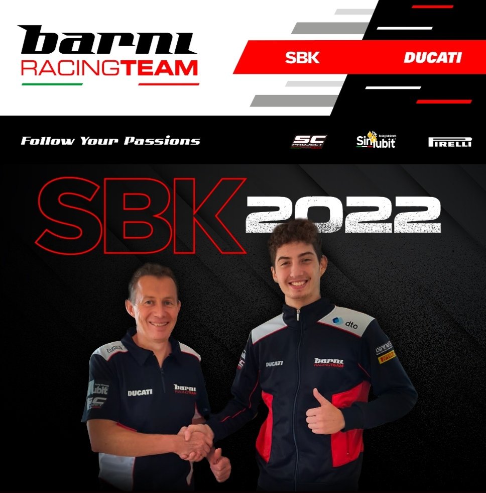 Il Barni Racing Team ha scelto il pilota per il mondiale Superbike 2022 e 2023: a guidare la Ducati Panigale V4 R della squadra bergamasca nel prossimo biennio sarà Luca Bernardi. La stretta di mano tra il 20enne sammarinese e il team manager Marco Barnabò apre così un nuovo capitolo per il Barni Racing Team, un nuovo progetto che mette al centro la valorizzazione dei giovani. Per il WorldSBK “Barni” ha scelto di puntare su un talento cresciuto nella terra dei motori (Bernardi è nato a San Marino il 29 agosto 2001) che – dopo aver conquistato il titolo di Campione Italiano Supersport nel 2020 – si è messo in evidenza in questa stagione nel mondiale Supersport. Nonostante abbia saltato per infortunio gli ultimi tre round, Bernardi è ancora sesto assoluto nella classifica del WorldSSP, frutto di una grande costanza di risultati ad alti livelli che lo hanno visto salire per cinque volte sul podio, con tre secondi posti (all’Estoril in gara 2 e a Misano sia in gara 1 che in gara 2) e due terzi posti (in gara 1 e gara 2 a Navarra). A Magny Cours, dove un incidente in gara 2 lo ha costretto a interrompere prematuramente la sua stagione, Bernardi aveva realizzato la sua prima pole position. Proprio questo cammino in crescendo ha convinto il Barni Racing Team a metterlo sotto contratto per i prossimi due anni.