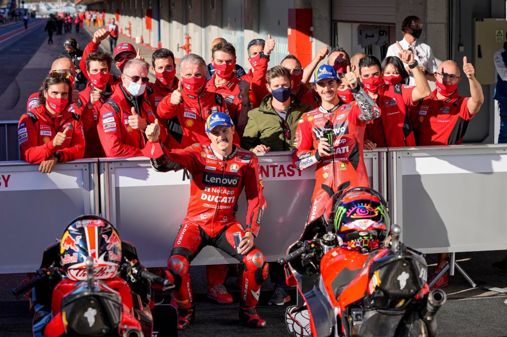 Per la seconda volta consecutiva e la quarta in questa stagione saranno i piloti del Ducati Lenovo Team a partire davanti a tutti nella gara in programma domani all’Autodromo Internacional do Algarve di Portimão (Portogallo). Grazie ad un giro veloce in 1:38.725, Pecco Bagnaia ha infatti ottenuto il nuovo record del circuito ed un’altra sensazionale pole position davanti a Jack Miller.