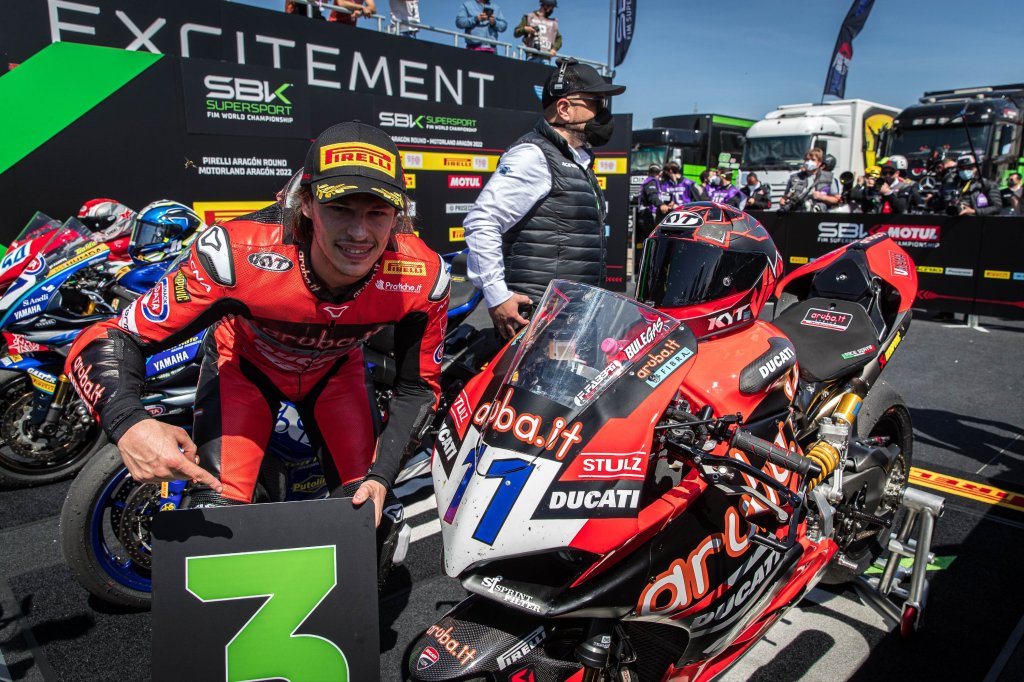 La domenica di Aragon sarà ricordata a lungo anche dal team Aruba.it Racing WSSP.Nicolò Bulega ha infatti conquistato il primo podio della Ducati Panigale V2 nel campionato WorldSSP.