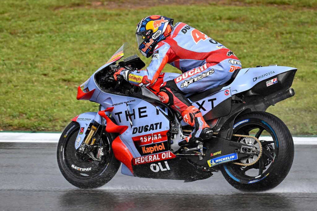 Si chiude in Q1 il sabato portoghese del Team Gresini MotoGP con Fabio Di Giannantonio ed Enea Bastianini questa volta limitati da un meteo troppo variabile. Ancora pioggia battente in mattinata, seguita da considizioni miste in Fp4 e infine una Q1 iniziata con gomme da bagnato e conclusa con 4 giri slick. Bravo Fabio Di Giannantonio a scegliere quasi subito la mescola d’asciutto e provare per la prima volta la pista con le slick. Qualche giro perlustrativo per poi trovare un buon crono e una 16ª posizione finale.