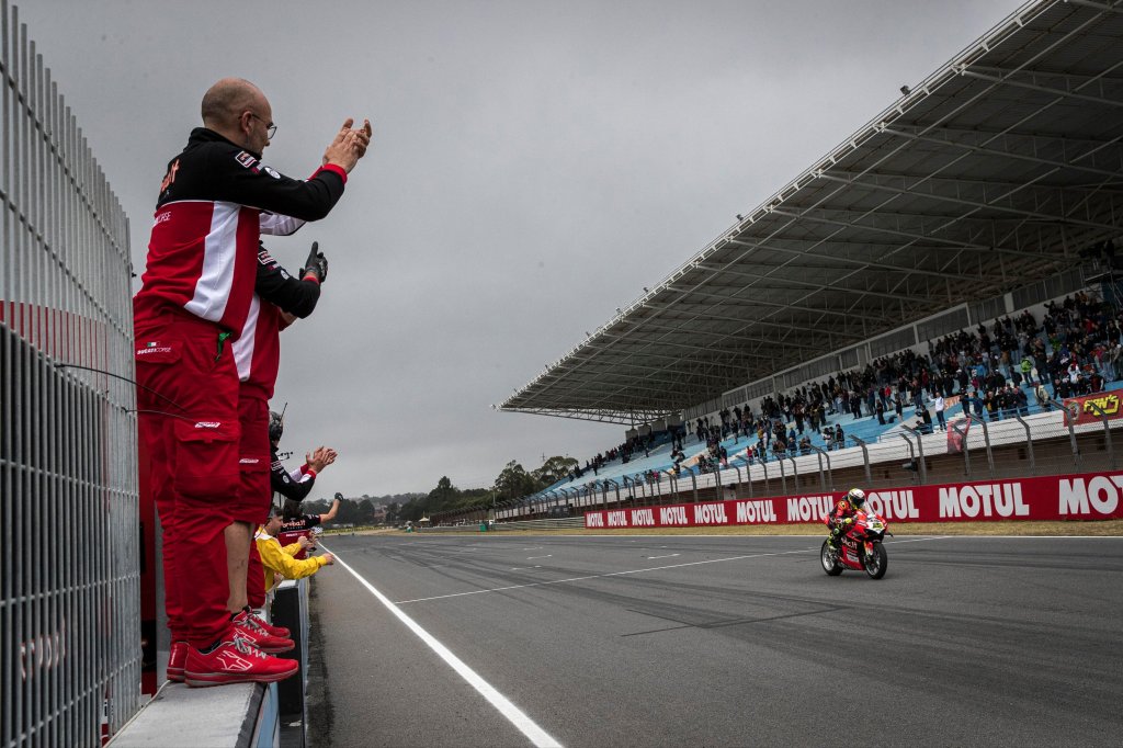 “E’ un fine settimana positivo con due gare davvero molto belle. Se devo essere sincero ho incontrato qualche difficoltà nella Superpole Race ma le condizioni del circuito, a causa della leggerissima pioggia, erano molto complesse. La battaglia con Rea in Gara-2 è stata emozionante. Nell’ultimo giro sono riuscito a rispondere bene al primo attacco, ma all’ultima curva Johnny è riuscito a chiudere la porta. Sentivo di essere vicino al limite quindi considero il secondo posto un risultato prezioso”.