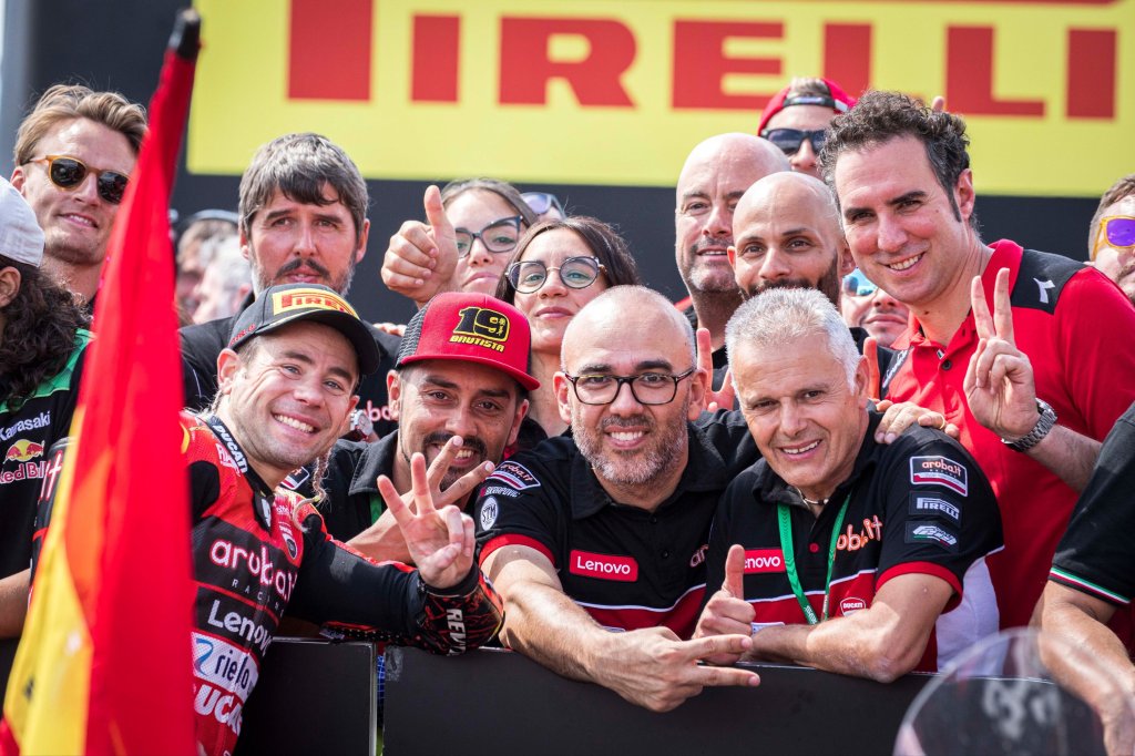 Dopo la straordinaria vittoria di sabato e le celebrazioni per il 1000° podio conquistato da Ducati nel Campionato del Mondo Superbike, Alvaro Bautista è stato di nuovo protagonista in Gara-2 chiudendo in seconda posizione dopo una spettacolare battaglia con Razgatlioglu (Yamaha) e Rea (Kawasaki). La gara di Michael Rinaldi, invece, è durata solo quattro giri a causa di un errore commesso dal pilota italiano che ha perso l’anteriore quando era in terza posizione.