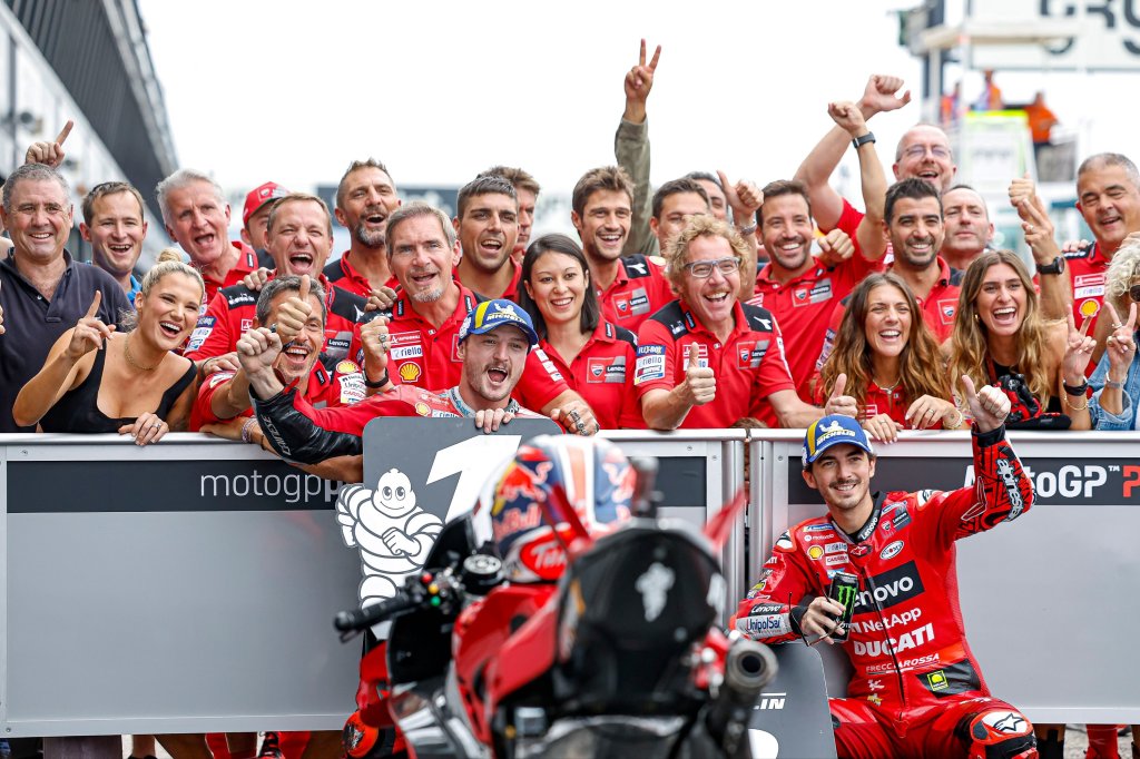 Sono state quattro le Desmosedici GP nelle prime posizioni in qualifica oggi. Enea Bastianini ha infatti ottenuto il terzo tempo con la Desmosedici GP del team Gresini Racing, mentre Marco Bezzecchi (VR46 Racing Team) ha ottenuto il quarto tempo dopo essere stato il più veloce della Q1, e partirà comunque in prima fila.