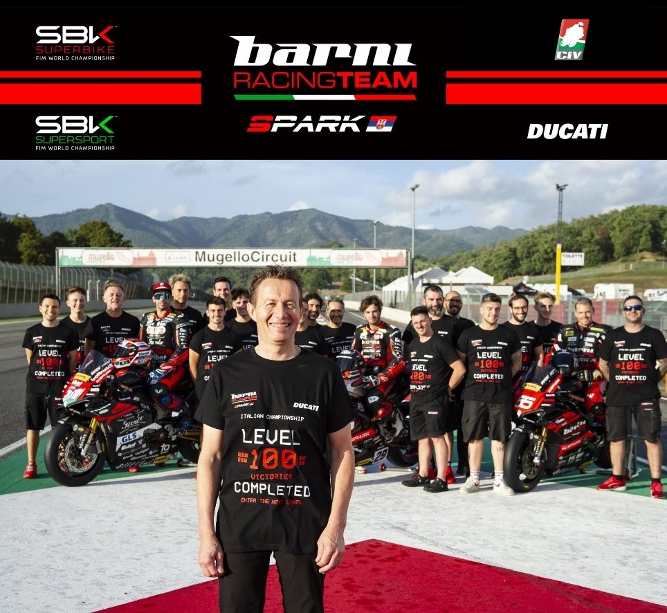 Il quinto round del Campionato Italiano Velocità, in programma il 17 e 18 settembre sul circuito del Mugello, sarà la prima occasione per Michele Pirro e il Barni Spark Racing Team di mettere in bacheca il sesto titolo Tricolore nella classe Superbike. Insieme Pirro e “Barni” hanno già conquistato cinque titoli Superbike e vanno a caccia di altri record, non prima di aver celebrato quelli raggiunti. Anche grazie alla doppietta di Pirro, a Misano, il team ha festeggiato la vittoria numero 100 nel CIV tra Superbike e Superstock e il traguardo è stato celebrato con una maglia speciale disegnata da Babol Communication, l’agenzia che cura tutte le attività di comunicazione del team. Nella maglia si legge “Level 100 Completed” e sulla schiena sono riportati i nomi di tutti i piloti, con il relativo numero di vittorie.