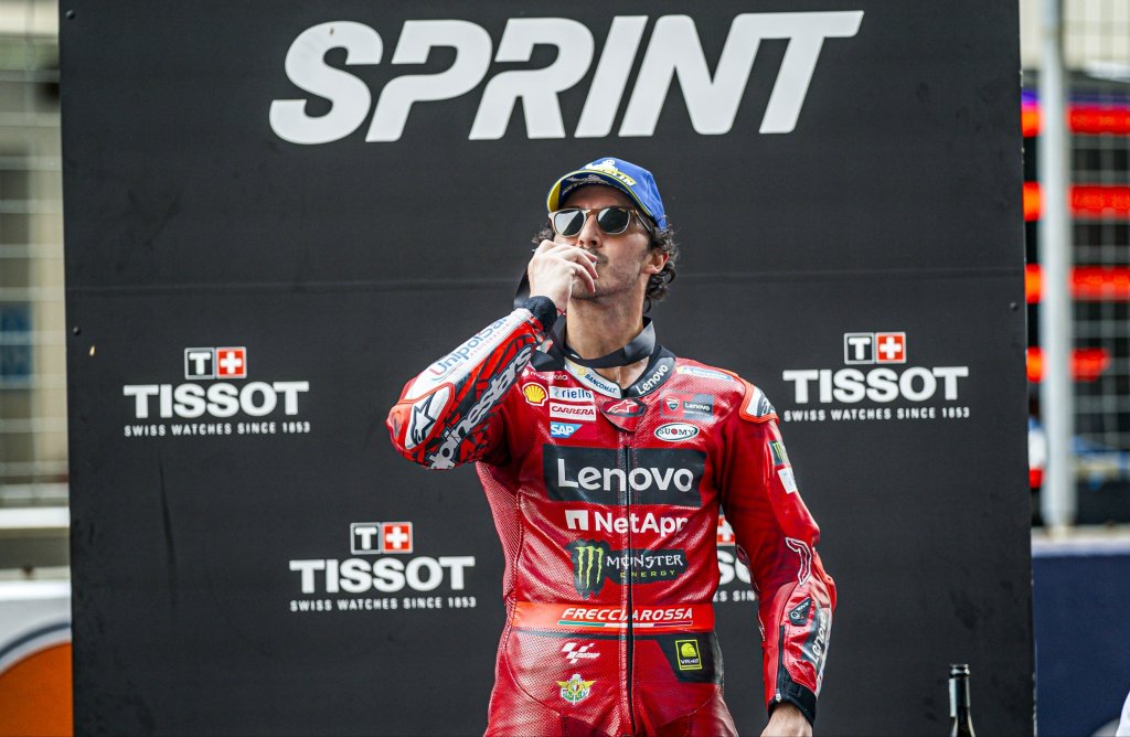 La gara, ridotta sulla distanza di 11 giri e disputata in condizioni miste con l’asfalto ancora umido, ha visto Martín guadagnare subito il primo posto dopo un’ottima partenza dalla prima fila con il secondo tempo. Bagnaia, terzo in griglia accanto al pilota spagnolo, si è portato subito alle sue spalle dopo il via, ma non è mai riuscito ad avvicinarsi abbastanza per poterlo impensierire. Nonostante il feeling con la sua Desmosedici GP non fosse ottimale, il pilota del Ducati Lenovo Team ha saputo difendere il suo secondo posto fino al traguardo, amministrando bene il suo vantaggio su Marc Márquez, terzo. Dopo la gara di oggi, Pecco mantiene la testa della classifica iridata con un vantaggio di 33 punti su Martín.