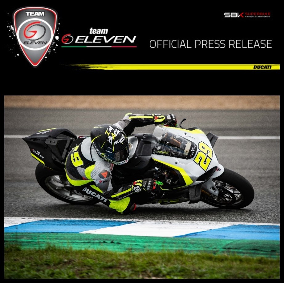 “Oggi è stata sicuramente una giornata positiva perché siamo riusciti a girare molto più di ieri, questo ci ha permesso di capire meglio la moto e le gomme che si sono comportate molto bene. L’approccio in sella alla Panigale per me è stato un colpo di fulmine. È una moto che ha potenza e spinta molto elevata, di questo oggi le mie braccia ne hanno risentito un po’. Ringrazio Ducati ed il team Go Eleven per tutto l’impegno messo in questo test. È stato fondamentale lo spirito positivo con cui abbiamo affrontato questo ritorno.”